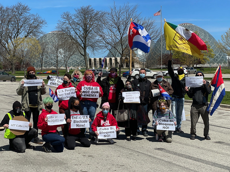 This worldwide movement, started by Cuban-Americans in Miami, in dozens of cities throughout the US, Canada, Latin America, Europe, and Africa, arrived in Milwaukee on Sunday, April 25. Following a short rally at Mitchell Park, a group of about 30 cars caravanned through the South Side. We plan to have another one on Sunday, May 30 at 1 PM, meeting again at Mitchell Park Domes (see below for full details). For more photos and two videos of the first event, courtesy of Sue Ruggles, click here.