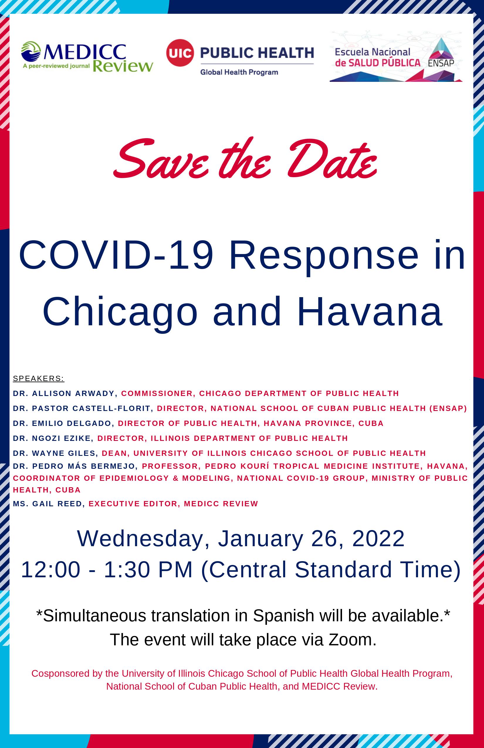 Mark your calendars for this Zoom webinar, co-sponsored by the University of Illinois Chicago School of Public Health Global Health Program, National School of Cuban Public Health, and MEDICC Review.