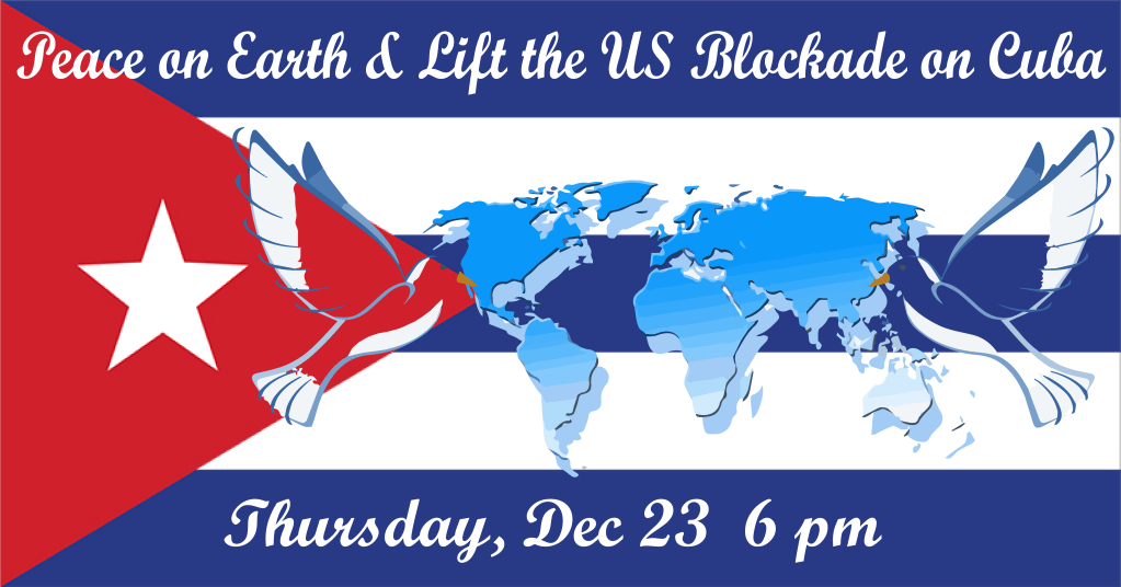 Join our Christmas vigil for Peace on Earth and to Lift the US Blockade of Cuba! Click here to view the event details on Facebook.
