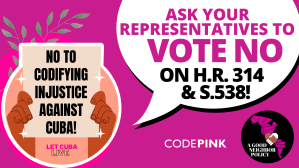 A new bill would codify Cuba’s status as a “sponsor of terror” into law. As Cuba struggles to import crucial goods due to the US blockade, this bill could make those challenges virtually permanent. Tell your members of Congress to vote NO.