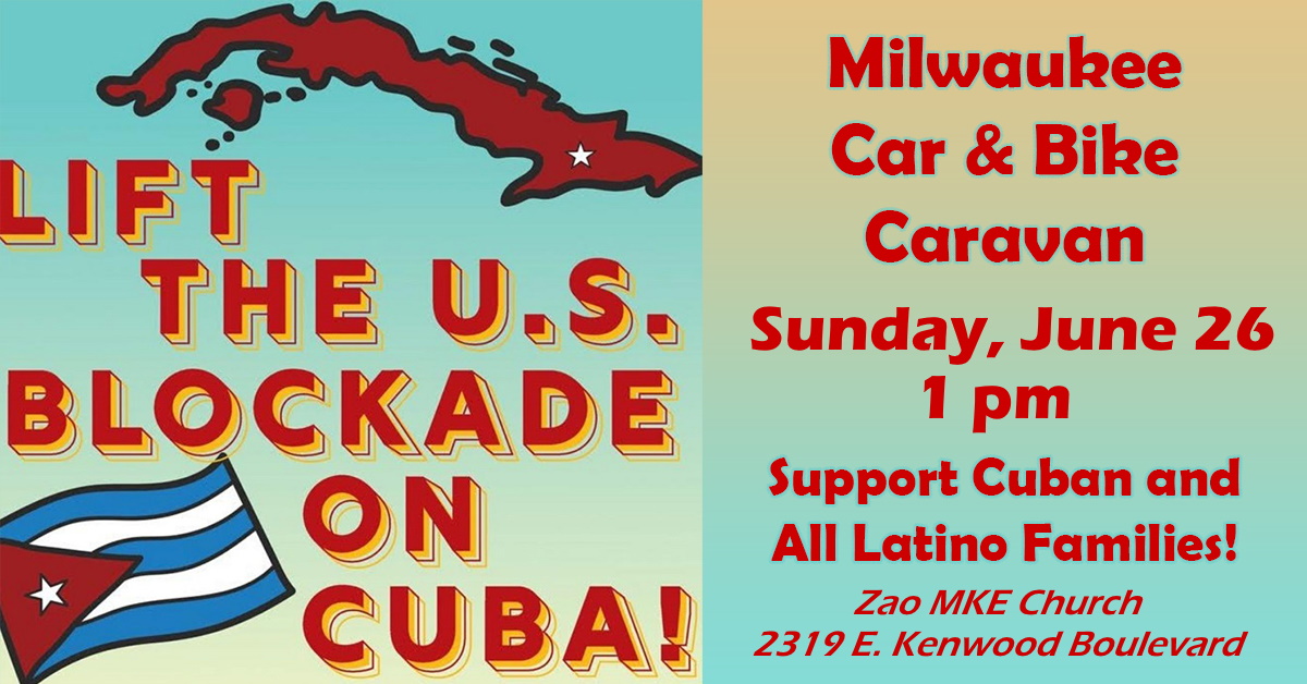 We will hear from a representative of the Pastors For Peace Caravan to Cuba (starting in Milwaukee & other cities) about why they are going to bring needed medicines and show solidarity with our neighbors in Cuba, and the need for us to support them with donations for this historic project.