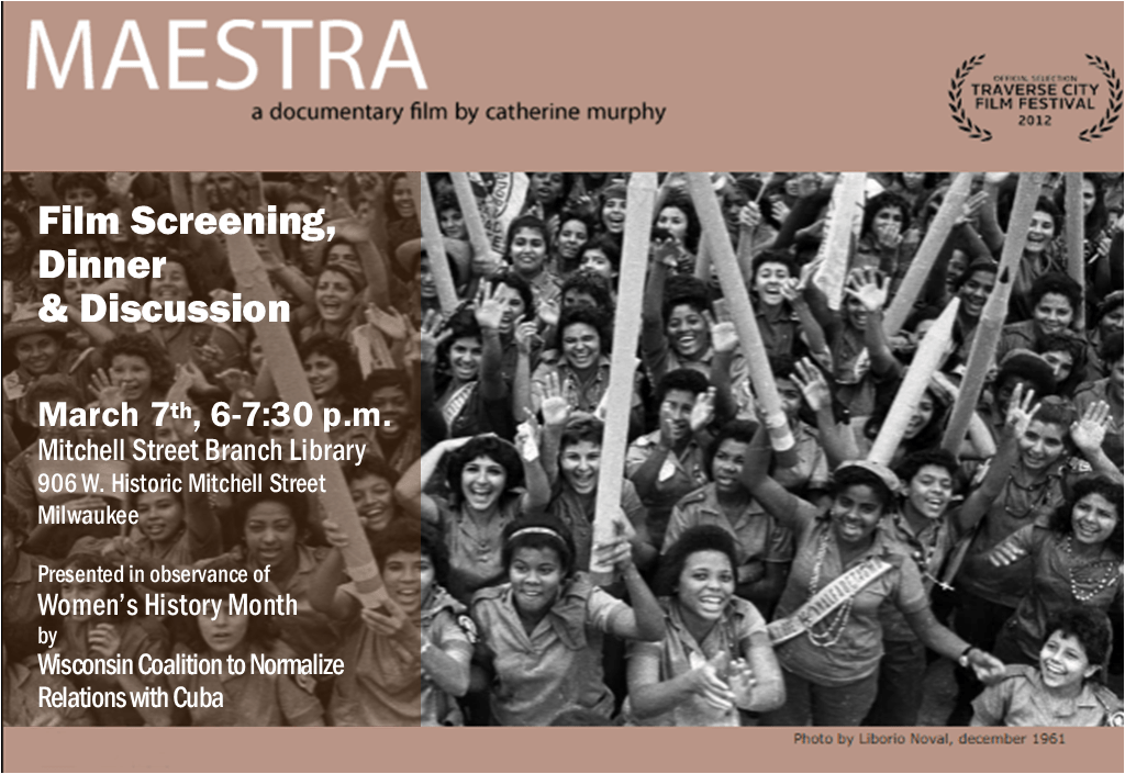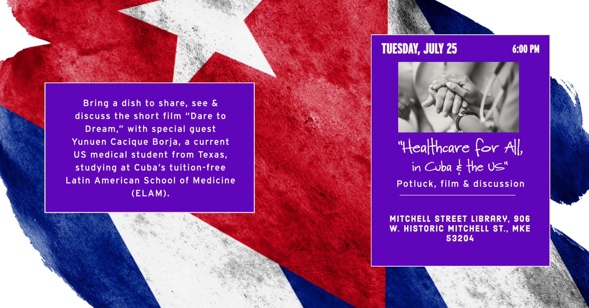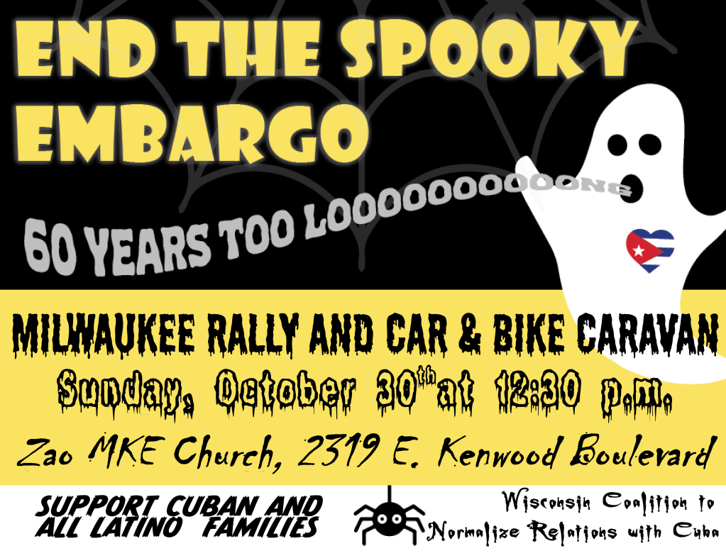The event is sponsored locally by the Wisconsin Coalition to Normalize Relations with Cuba, with Peace Action–WI and the End the Wars Coalition MKE. For more information or for interviews, call 414-273-1040 ext.12, or visit www.wicuba.org, www.facebook.com/WICNRC/ or email CubaWiFriends@mindspring.com.